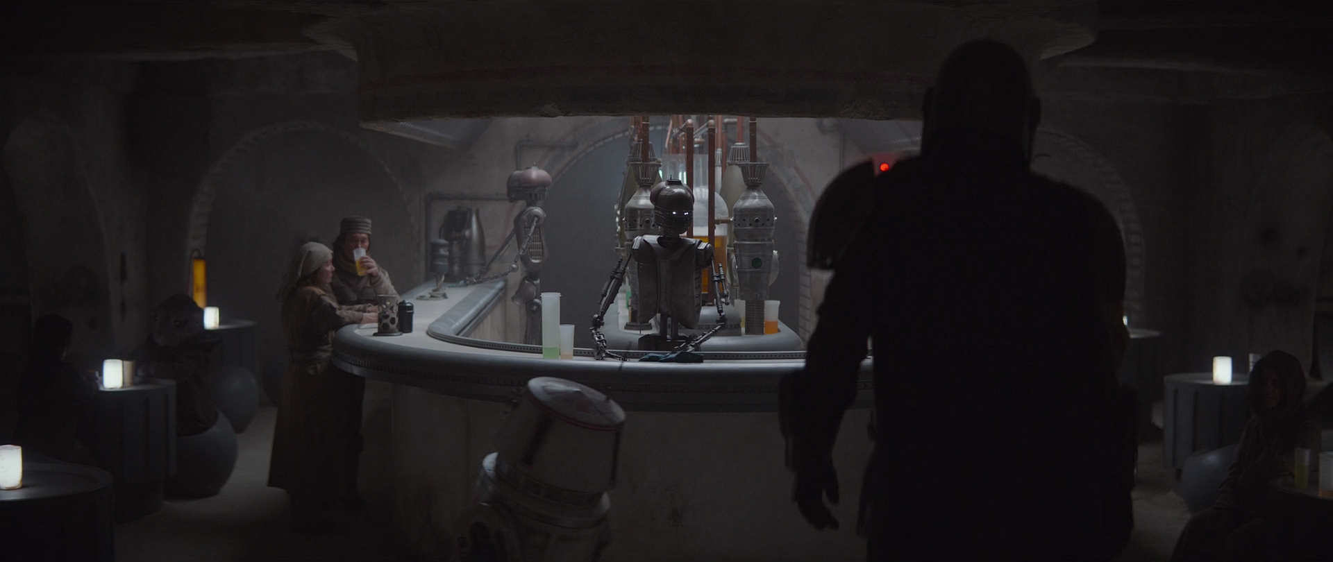 Patrons on the main bar of Chalmun's Cantina