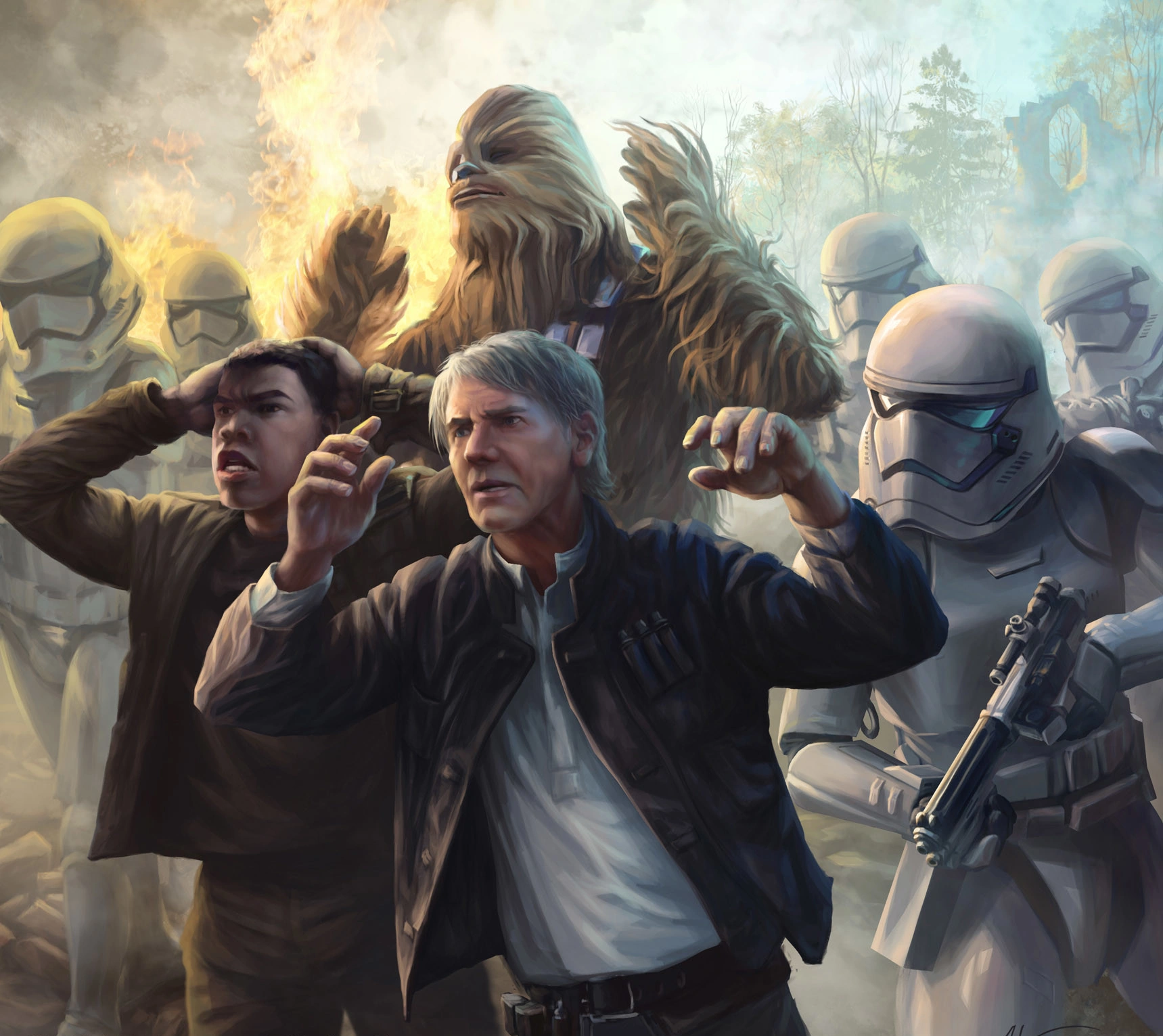 Chewbacca, Han and Finn are captured by the First Order on Takodana.