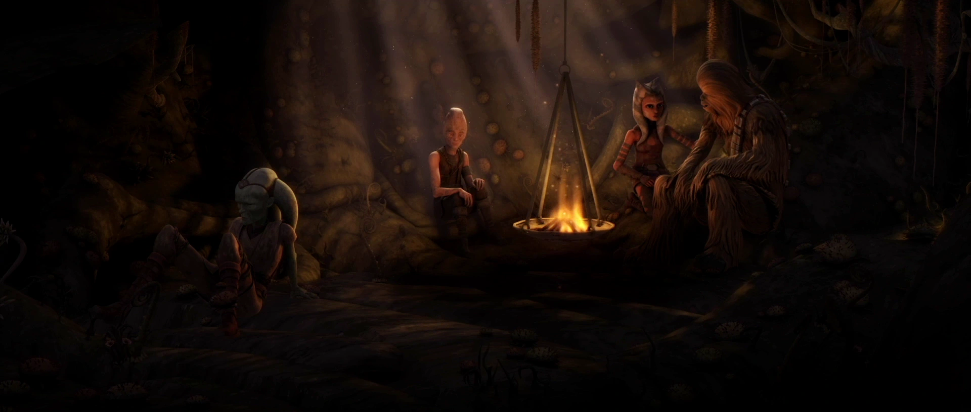 During the galaxy-spanning conflict between the Galactic Republic and the Separatists, Chewbacca was captured by a Trandoshan hunting guild led by Garnac; taken to Island Four on Wasskah to be their prey, his transport was attacked by a trio of Jedi apprentices—the Padawan Ahsoka Tano and the younglings Jinx and O-Mer, also prey of the Trandoshans.[20]