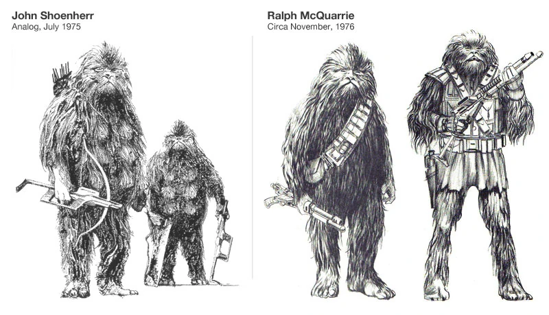 John Schoenherr's illustration (left) and Ralph McQuarrie's Chewbacca concept art (right)
