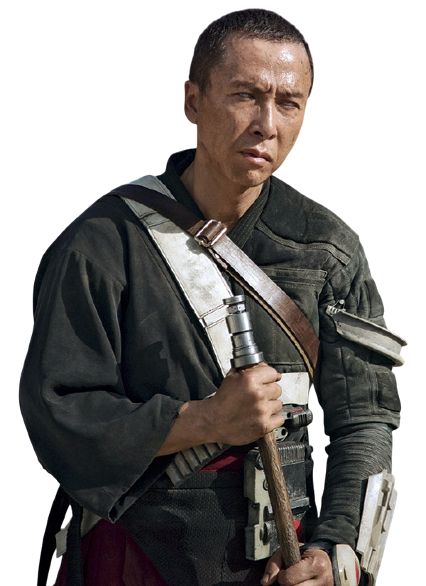 Chirrut Îmwe was a blind human male born on the moon Jedha in 53 BBY. He used a uneti-wood staff and handmade lightbow in addition to being a master Zama-shiwo martial artist. One of the Guardians of the Whills, an order of spiritual warrior-monks, he was active during the days of the Galactic Empire and worked as an itinerant preacher in Jedha City. Alongside his close friend, partner, and protector, Baze Malbus, he went to Eadu with Cassian Andor, K-2SO, Jyn Erso, and Bodhi Rook. Îmwe became part of a volunteer group of Rebels tasked with stealing the plans of the first Death Star. Îmwe died during the Battle of Scarif in 1 BBY after assisting Erso and Andor in breaking into the Imperial archives. Chirrut's valiant sacrifice along with the rest of Rogue One ensured the success of the mission and the eventual destruction of the Death Star.