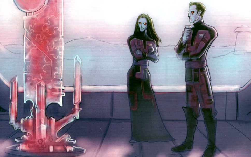 "Bronze" and "Rust," female Chiss representatives of the Four Families