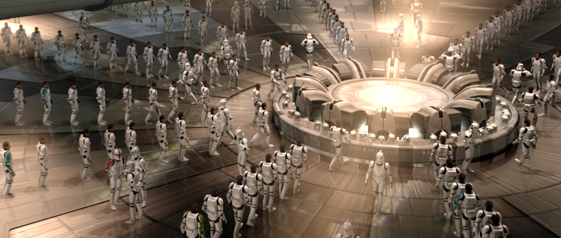 As the war continued, the Senate broached the subject of buying more clones to augment the Grand Army's ranks. While Senator Padmé Amidala and other like-minded politicians advocated fiscal responsibility and a diplomatic solution to the war, others argued for increased military spending. Senator Halle Burtoni favored legislation that would deregulate the InterGalactic Banking Clan, thereby providing the Republic with new lines of credit to purchase more clone troopers from Burtoni's homeworld of Kamino.[19]
