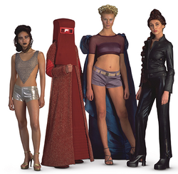 Work clothing was reserved for work. Many Galactic Republic senators proudly wore the traditional garments of their people, which reflected the culture of their homeworld. Others used their status and significant budget to pay for lavish clothes and wore elaborate creations made by the most famous clothing designers on Coruscant, using the finest imported fabrics. Some senatorial aides would follow the lead of their senator, while others, like the Umbaran Sly Moore, preferred to create an intimidating presence with their attires. In keeping with their simple yet strict lifestyle, most members of the Jedi Order wore traditional, earth-toned robes which were warm, comfortable and allowed great freedom of movement. However, the Jedi Order also permitted their members to wear robes from their own homeworlds, as exemplified by Jedi Master Luminara Unduli and Padawan Barriss Offee, who both wore outfits of Mirialan design. While in hiding, the Sith wore clothing that obscured their identity but were still designed to instill fear in others. Naboo handmaidens served their queen as advisers and bodyguards and wore matching outfits and hoods which concealed their identities, while billowing cloaks concealed weapons used to protect the queen in the event of an attack.[4] On the lower levels of Coruscant, species tribalism was common, with immigrant cultures creating their own territories of homes and businesses, rather than fully integrating with the myriad of species found on the planet. As a result, the lower level police wore all-enveloping uniforms designed to obscure any traits that may define them as belonging to a specific species. However, this also limited their ability to make connections. Officers on the upper levels did not have to wear such uniforms and did not have this problem.[5]