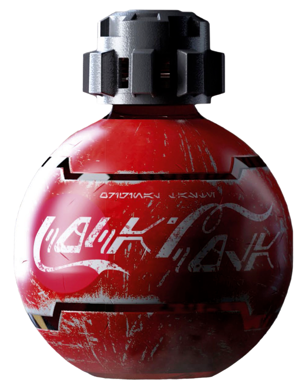 Coca-Cola was a carbonated, caffeinated soda served in plastic orb bottles and paper cups at various locations throughout Black Spire Outpost on the planet Batuu in 34 ABY. The beverage was imported by Jat Kaa, a Lurmen male from the planet Mygeeto, who sold it to travelers and locals via his company, Jat Kaa's Coolers, at pop-up locations around the outpost and in the nearby ancient ruins.