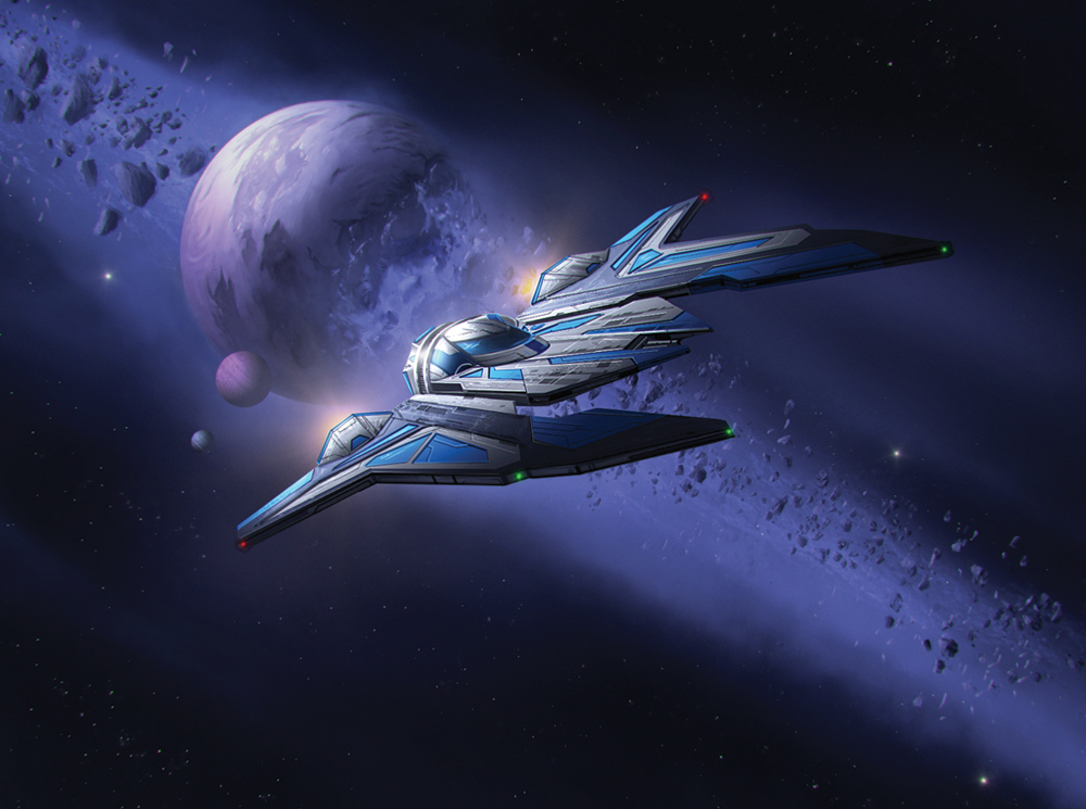 A modified Kom'rk-class fighter/transport patrols Concord Dawn.