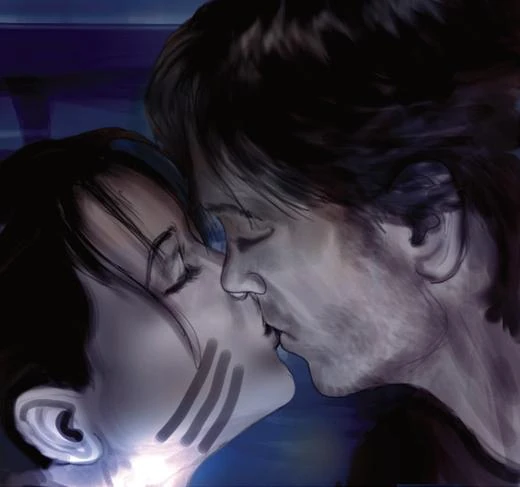 After bribing a local bartender with the credits Fett left him, Connor did manage to find Vel's home. Surprised to find a young Ailyn Vel at the door, Sintas came behind him to confront him as to what he wanted.[3] Before he got much of a chance to answer, a Devaronian strike team in a landspeeder began shooting at them, and Connor proved his good intentions by helping them dispatch them. Relocating to an armored safehouse in town, Connor explained his story to Ailyn in the form of her bedtime story. After putting her to bed, Sintas started telling him about how much he reminded her of Fett, and kissed him. As he was eating a late dinner afterwards, Connor discovered a family holo, discovering that he had just kissed his brother's wife.[7] Sintas then entered the room and explained to an upset Connor about Fett's time as a Journeyman Protector, and how their marriage ended after Fett's exile. She kissed him again, and Ailyn made fun of them for doing so. Just then, the safehouse door blew open, and Connor was able to deflect it from them with his cybernetic arm.