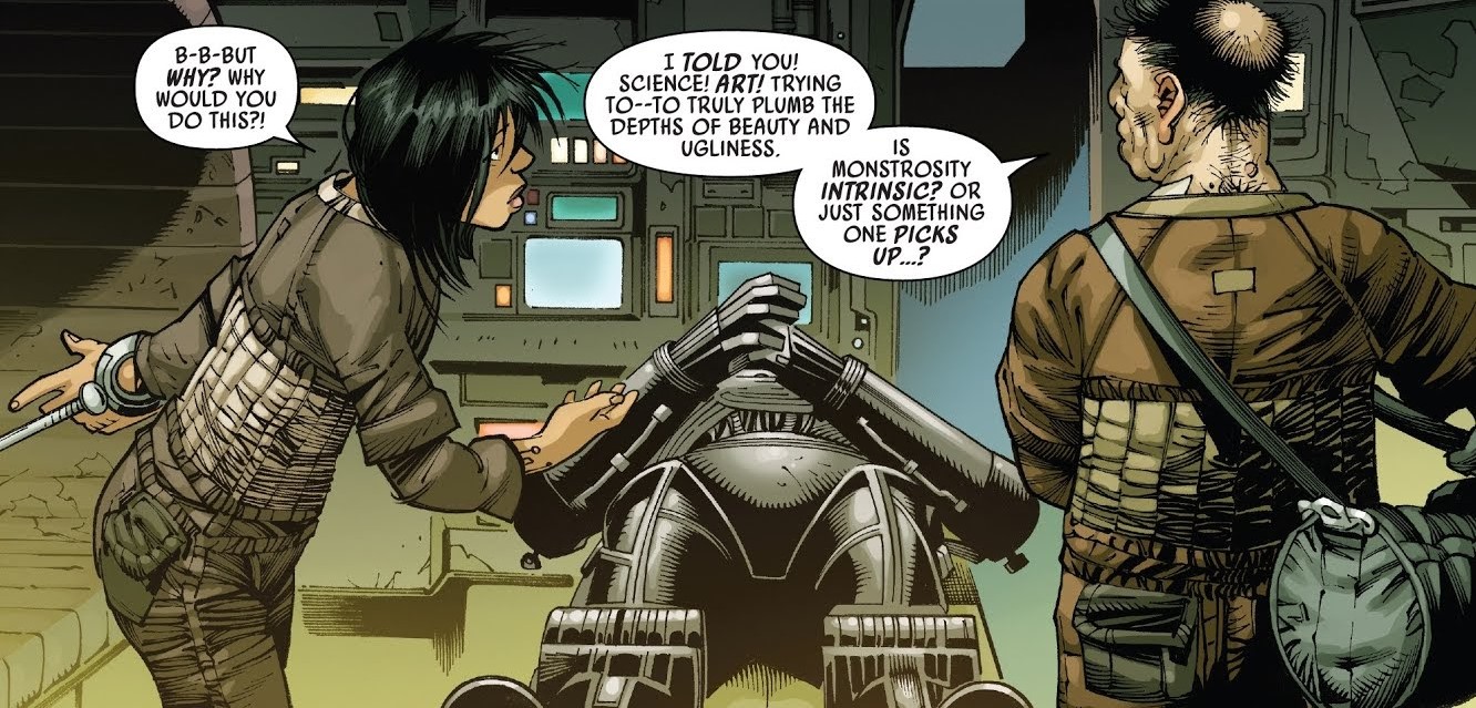 "I told you! Science! Art! Trying to—to truly plumb the depths of beauty and ugliness. Is monstrisity intrinsic? Or just something one picks up…?" - ―Aphra and Evazan