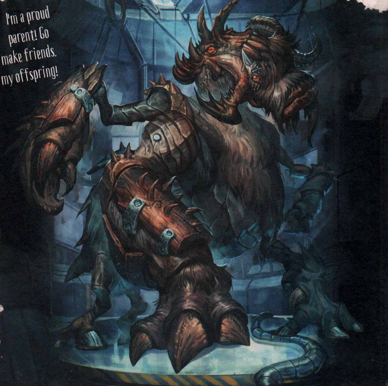 The doctor eventually began creating his own creature from the limbs and organs of others. In a log entry during his work, he detailed asking Baba to dig up a dozen more corpses in order to replenish his bone supply, suggesting the graves on Makem Te. The doctor wished to grind what bones were not used and sell them to elixir hustlers on Nar Shaddaa[18] the moon of the Hutt Space world Nal Hutta.[54] The creature was then finished and brought to life, the animal possessing a number of limbs, heads and metal attachments. Evazan called himself a parent and celebrated his success in another log entry, adding that there may be too many arms and offering to graft one to Baba's stump instead. However, the beast was soon shot dead by the mercenary Anton Markox while it had the Smuggler's Guide, the book falling into Markox's hands.[18]