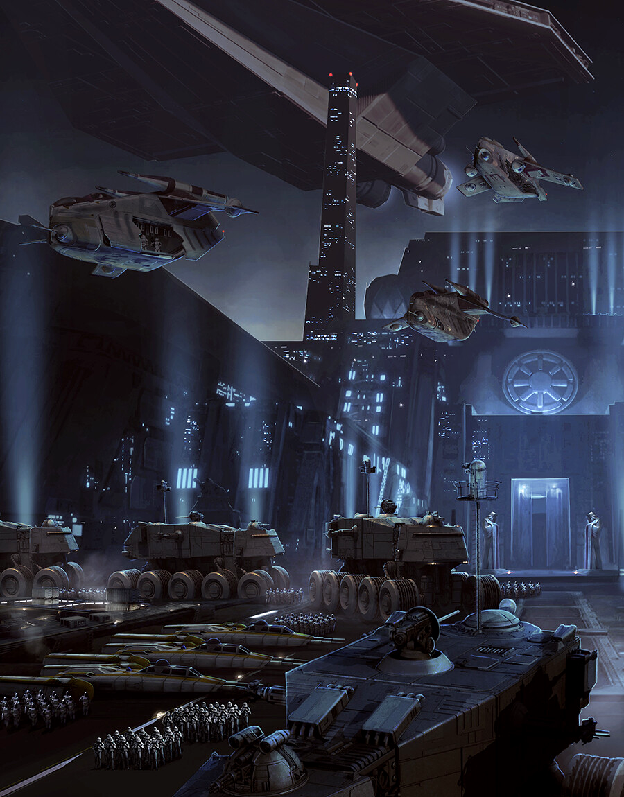 During the fall of the Republic, political intrigue wrought by corruption and secession transformed Coruscant into a dangerous environment by the time of the Clone Wars—the first major war waged on a galactic scale in a thousand years. Between assassination plots and terrorist bombings, the Senate turned to the leadership of Supreme Chancellor Sheev Palpatine. As Palpatine's authority increased exponentially, the presence of the Grand Army of the Republic on Coruscant also grew at a steady rate, from the establishment of the Coruscant Guard to building the Republic Center for Military Operations in the Federal District.