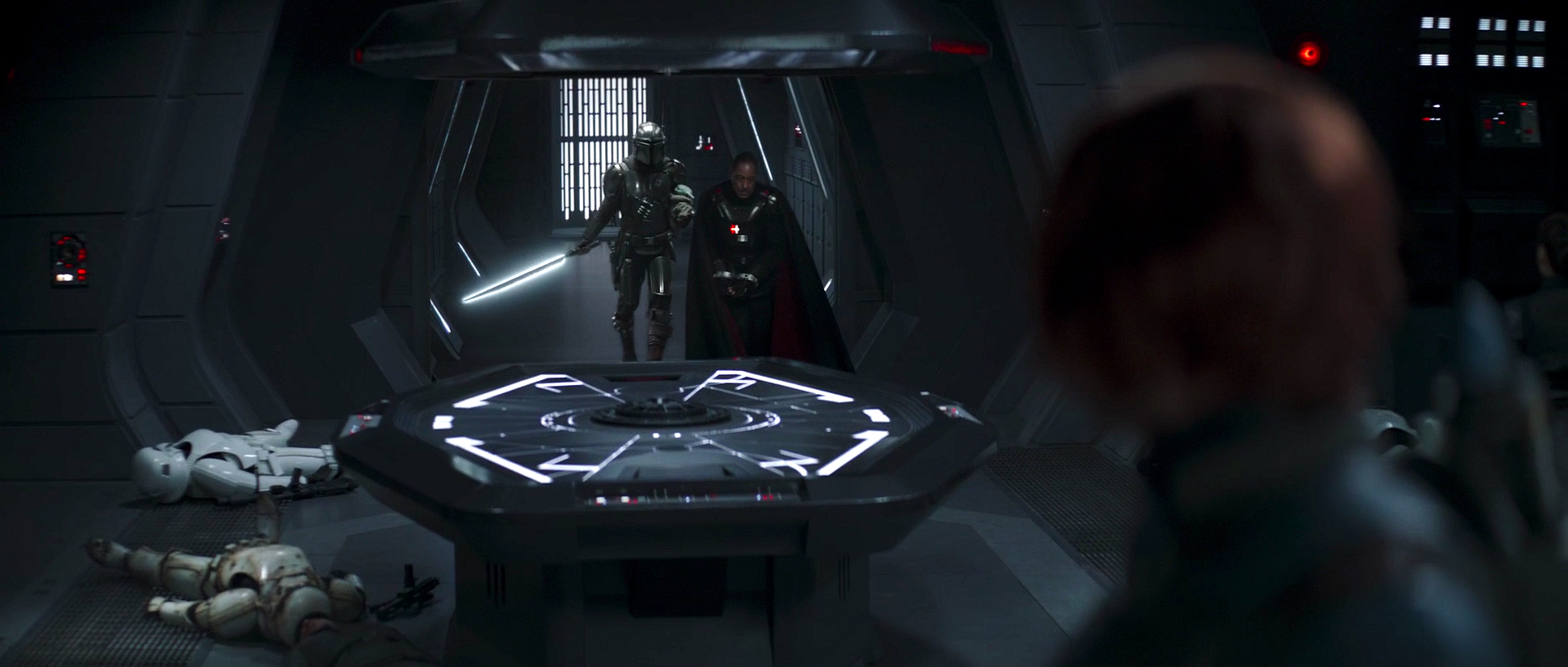 Kryze realizes that the new Darksaber user is Djarin, having won it in combat against Gideon.