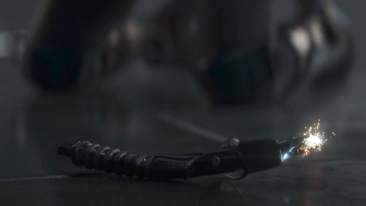 Though it had originally been intended for Pre Vizsla to fight using a vibroblade, a familiar weapon in the Star Wars Expanded Universe, the vibroblade was later modified at the request of George Lucas, with the creative team altering the blade into an archaic, black-bladed lightsaber they deemed the Darksaber.[23]