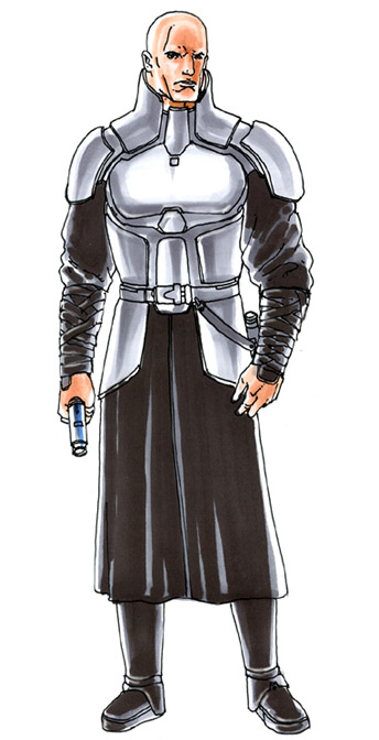 Concept art of Darth Bandon, which was later used as art of an armored Dark Jedi