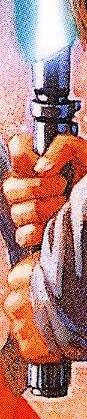 During his five-year Force journey, Solo learned a wide range of esoteric abilities from many Force-using traditions. Tadar'Ro taught him the Aing-Tii ability to teleport objects, as well as the power of flow-walking, a technique that let him experience the past and future by projecting himself forward or backward in time but not in space.[17] Aing-Tii fighting-sight allowed him to anticipate events in battle with unusual speed and precision.[6] On Solo's journeys, he acquired the Dathomiri ability to kindle a globe of light through a Force spell, which he could move and manipulate to provide illumination, and the Nightsisters taught him the blood trail technique, allowing him to imbue his own blood with a connection to himself that he could follow through the Force—useful for tracking attackers who got his blood on them.[6][19] At some point in his journey, he learned to use the Force to shock an individual's spinal cord and paralyze them briefly, an ability unique to him among the Jedi.[12][99] From the Theran Listeners, Solo learned techniques to quiet his mind and focus on communications through the Force, hearing and understanding them more clearly and determining greater detail about the communicator. Theran Force-listening allowed him to comprehend the speech of others.[19] He also gained the ability to listen remotely, hearing the sounds of far-off places with the proper techniques.[12] Among the Baran Do, Solo learned their techniques for weather prediction, involving the sensing of natural energy. He then swiftly learned techniques from the Baran Do hassat-durr family, which involved the manipulation of his body's electromagnetic field for various objects. Among those he mastered was the ayna-seff ability, which allowed him to control the way his brain would appear to electroencephaloscans.[18] Solo learned the memory rub technique from the Fallanassi, which allowed him to suppress others' memories through application of the Force.[20] In addition, Solo was familiar with Fallanassi techniques to project illusions, and could create highly convincing projections using the sect's techniques, including the Fallanassi mirror illusion technique, projecting an illusion the nature of which was determined by the viewer.[20][89]