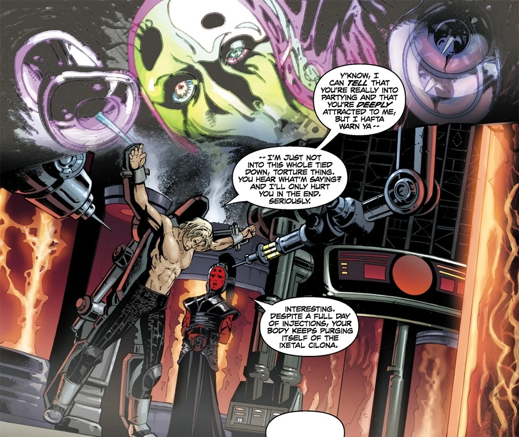 Darth Maladi tortures Hosk Trey'lis.