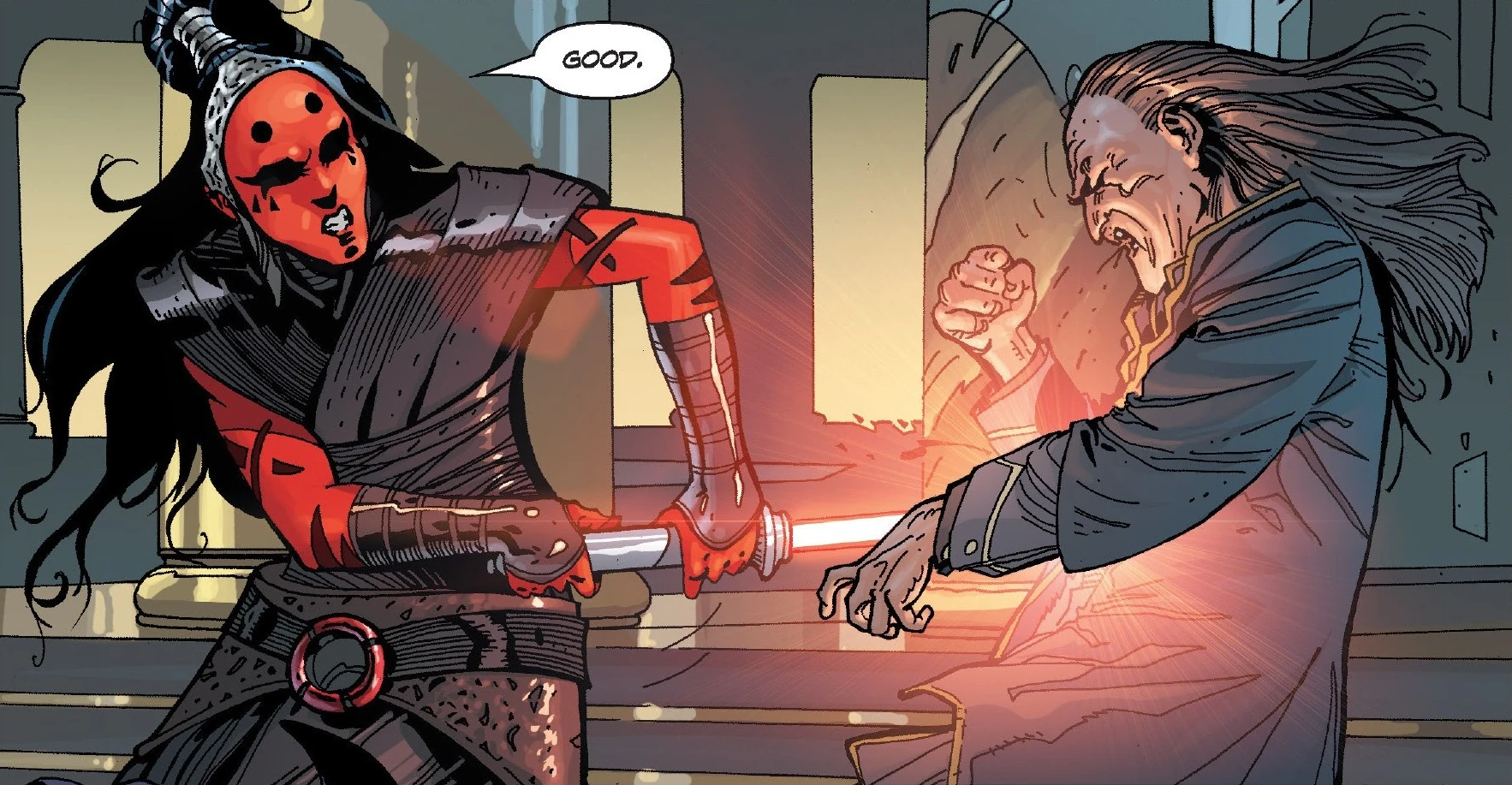 Darth Maladi duels Shado Vao.