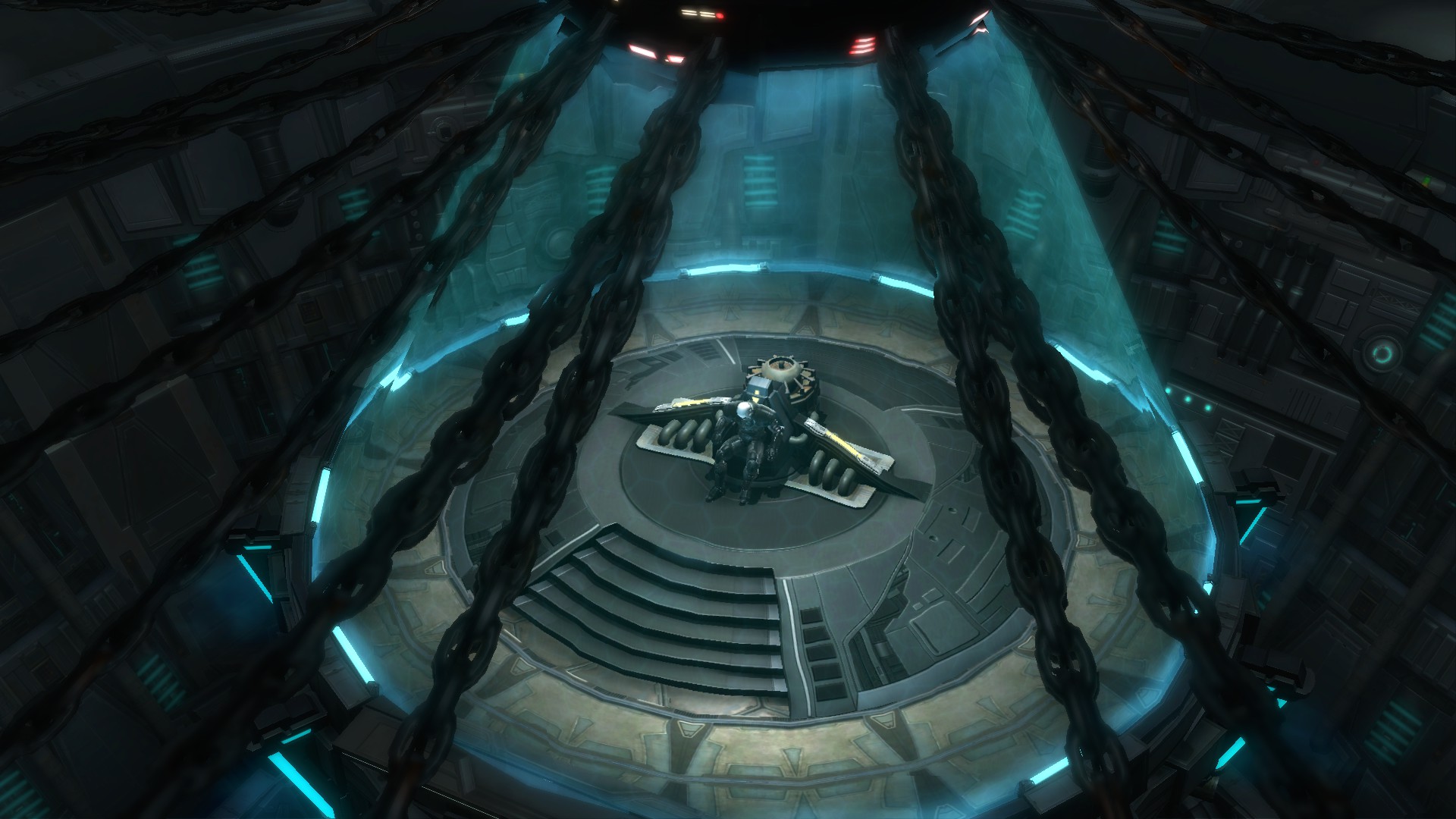 Vindican easily deflected the rocket, but was enraged to see Darach order Shan to escape aboard the freighter. Angered that his opponent was escaping, Malgus engaged Darach alongside his master while the Zabrak Battlemaster defended himself with both his and Shan's weapons. Despite the Sith's advantage of numbers, Darach easily beat back their attacks and scored a hit on Vindican's face before stabbing the Sith Master through his chest. Despite the fall of Malgus' master, the younger Sith summoned his master's double-bladed lightsaber to his hand and charged Darach, batting aside the chunks of machinery and metal that the Jedi threw at him. Knocking Shan's saberstaff from Darach's grasp and battering down the Zabrak's defenses, Malgus brought the duel to a close when he cut down the Jedi Master.[10]