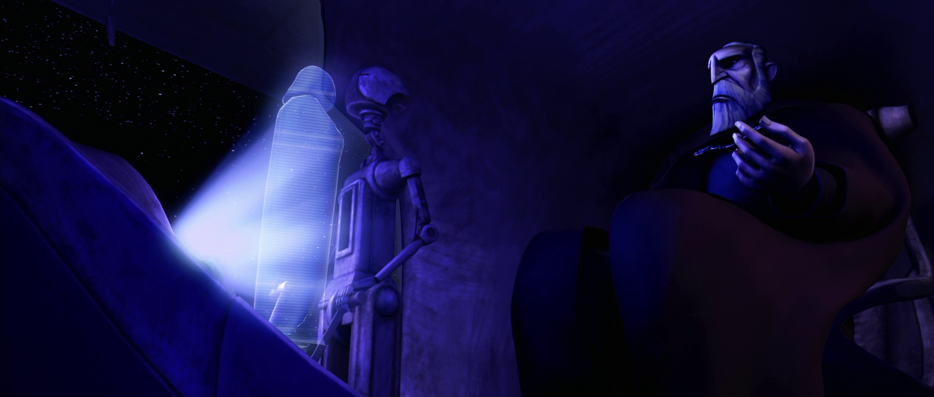 Prior to the Galactic Empire, Darth Sidious was careful to put on a charade, presenting himself as a grandfatherly gentleman and a servant of the public good. When in character, he often spoke of himself with great modesty and maintained only as much luxury as was expected of someone of his stature.[182] However, Sidious was, in fact, a skilled manipulator and strategist, having orchestrated countless events in the galaxy, from the Invasion of Naboo to the Clone Wars, while deceiving the Jedi, Senate, Republic, and even the Separatists, with the sole aim of increasing his own power.[9] Even when something occurred that he did not initially plan for, the Sith Lord demonstrated that he was as adept at improvisation as he was at plotting,[1] continuing to play his long game—a smart game—for power.[22]