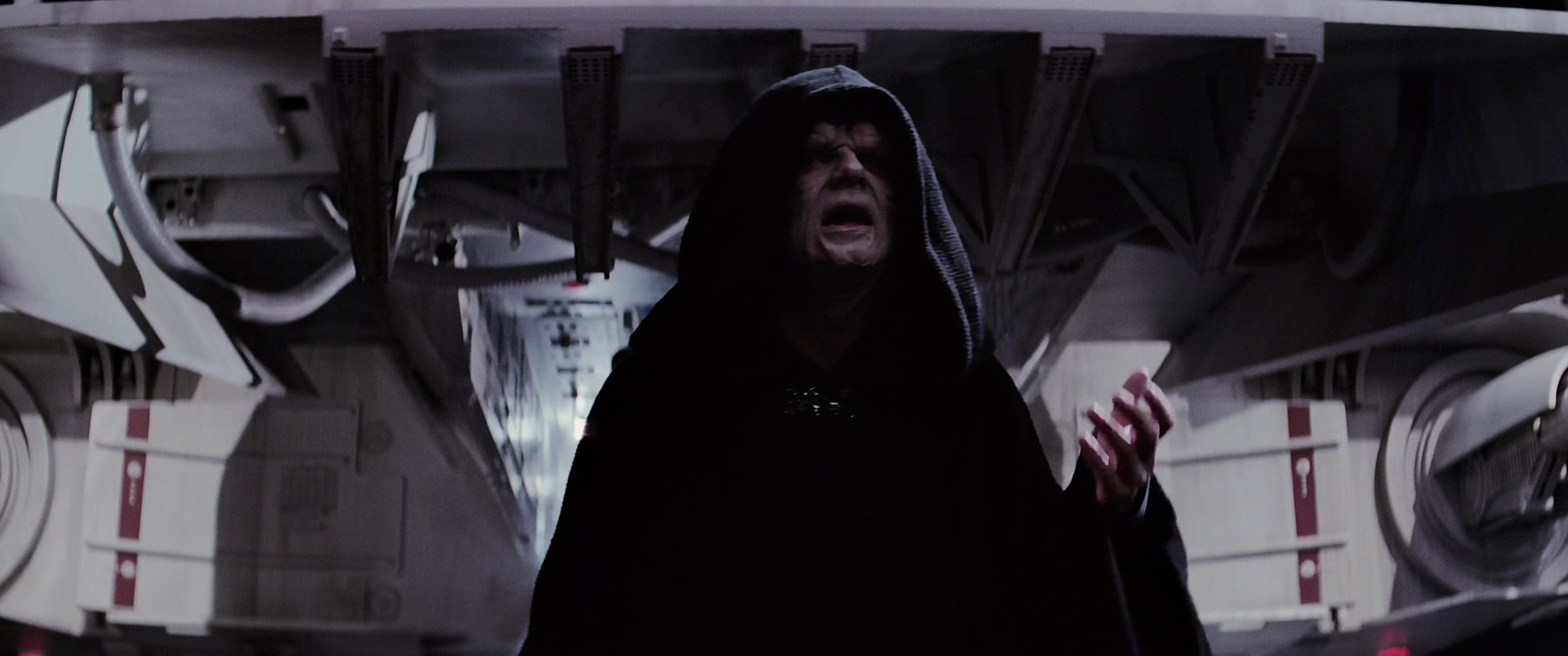 As a Sith Lord, Darth Sidious possessed a very powerful connection to Force that allowed to using various Force powers that were beyond the abilities of the most powerful Jedi Masters.[24] For this he was to be one of most powerful Force-users in galactic history.[190] Among the abilities Sidious would use was Force lightning, which he used as both as a deadly attack[18] and as a means of torture.[5] On several occasions on Ryloth, he utilized blasts of Force lightning powerful enough to not have only killed the lyleks on contact, but also badly charred and scorched their carapaces, which were tough enough to repel heavy blaster fire. On another occasion, he used the ability to damage a Twi'lek freighter's engines badly enough to pull it out of the sky with telekinesis.[104] Sidious could use Force lightning in a number of ways, including striking multiple enemies at once, with the bolts jumping from one victim to the other, like a chain and imbuing the ground around a victim's feet with energy, effectively electrocuting them. His Force lightning's raw power was demonstrated to be far greater than that of Dooku's; while Yoda was able to effortlessly absorb and deflect Dooku's lightning, he was only able to partially deflect Sidious's. Another more obscure ability that he possessed was the power to produce a dark aura, a miniature storm of malevolent Force energy that slowed the movement of and tortured all that it caught within its radius.[159] The maximum potential of Sidious's Force lightning, however, was achieved before his final death on Exegol; when restored back to his former self, Sidious unleashed an immense wave of Force lightning towards the sky which rapidly expanded enough to disable all the ships of the Resistance.[8]