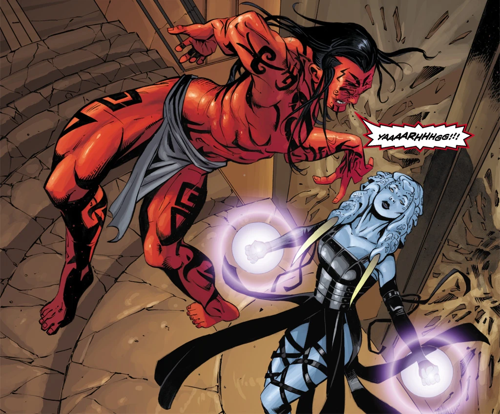 Stryfe using Force lightning on a rakghoul.