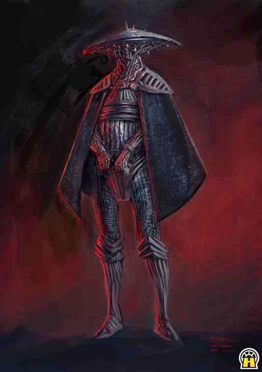 Because of the extensive mechanics of his armor, he was once mistaken by the droid C-3PO for a new model of guard droid during one of the Emperor's Ball ceremonies. The Sith Lord sentenced the protocol droid to work as a preschool attendant for a year as punishment.[37][38]