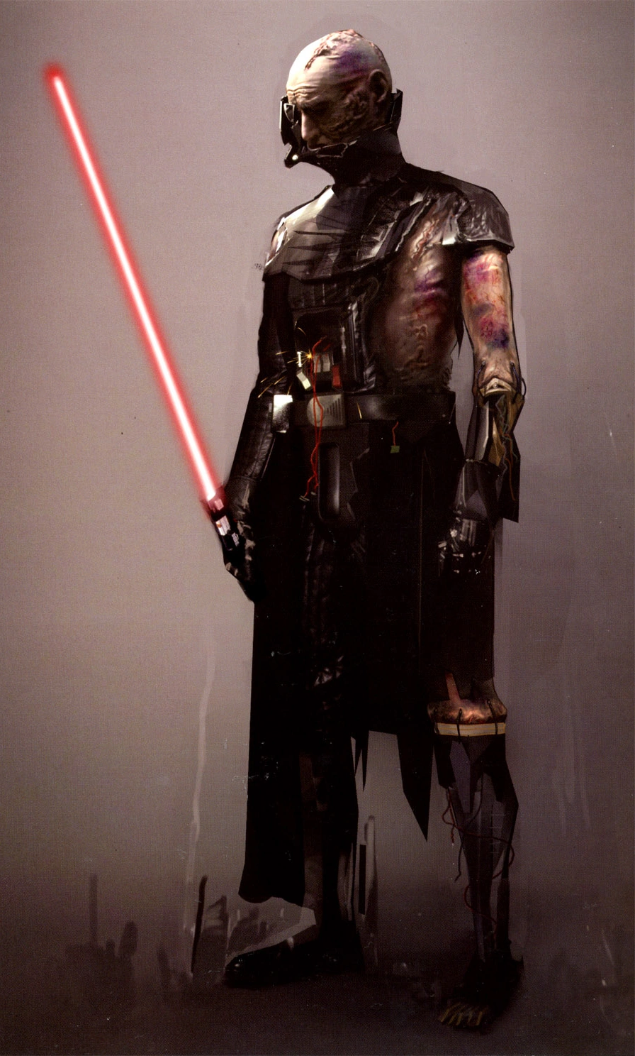 An expert mechanical engineer himself, Vader was dismayed by the incompetence of the medical droids responsible for his resurrection in Sidious' laboratory on Coruscant. The technology in the suit was already obsolete, having been used to rebuild and create General Grievous decades earlier. While Vader retained his knowledge of the Jedi arts, he began to feel uncertain about his place in the Force, and while he had taken his first steps toward awakening the power of the dark side, he felt uncertain about his ability to sustain that power.[18] He knew that he was hampered by his injuries, and knew he never could achieve his full potential because of it.[46] At times, Vader wondered if Darth Sidious had purposely designed the armor to restrict him.[18]