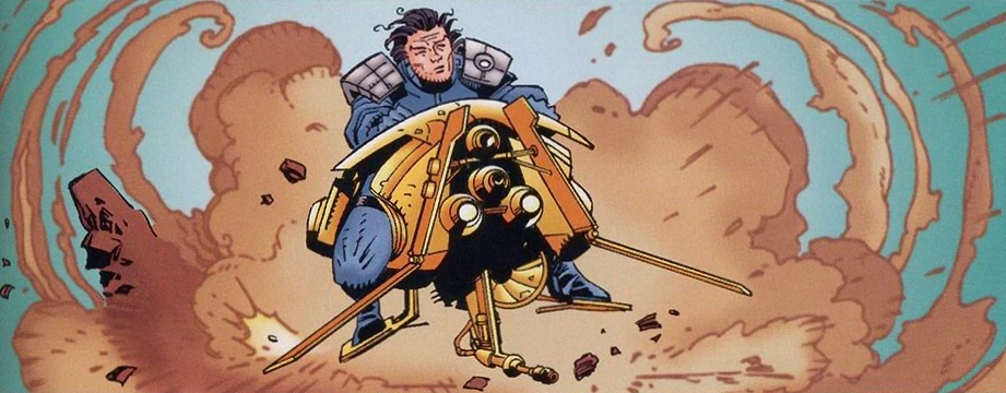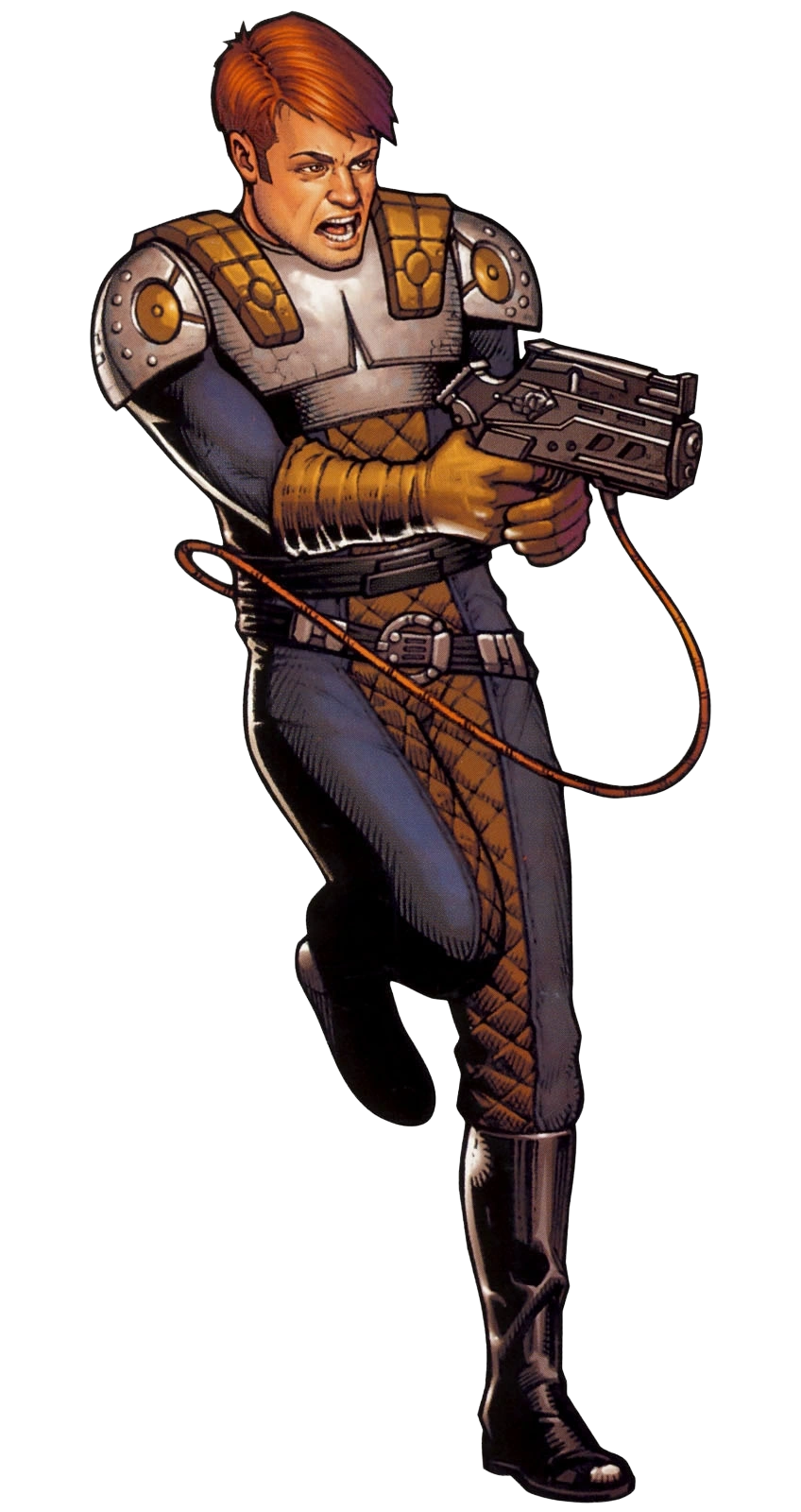 Before settling with Rendar as a charismatic and flamboyant hero, at some point the designers experimented with different archetypes. This sketch for Dash Rendar by Kilian Plunkett reflects that early stage of conception, with a proposal to make Dash an asocial, gruff and unkempt underground character.