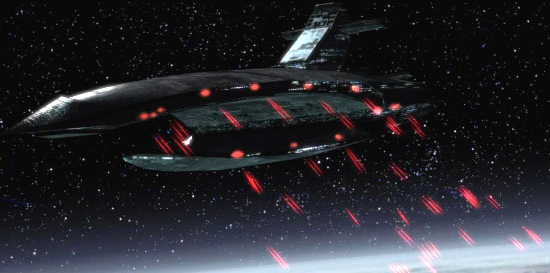Sith fighters pursue the Ebon Hawk.