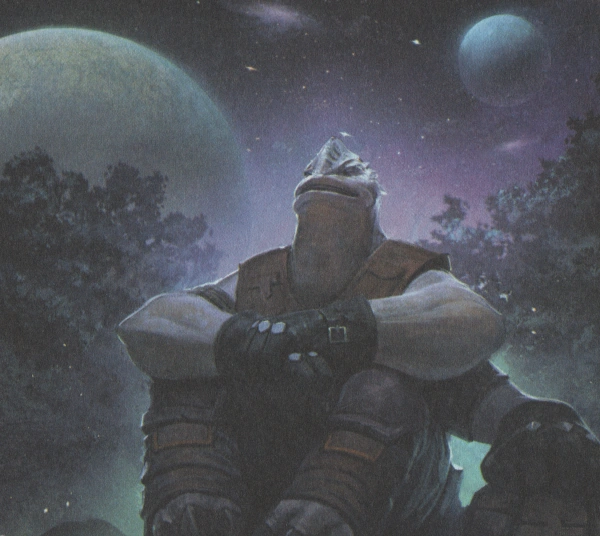 After hearing rumors of illegal cyborg mods and bodies grown to fit buyer specifications in the stellar skirt of the Tingel Arm, Jettster arrived on Athus Klee in a star-streamer to investigate. After the starship made port in the morning, most passengers poured out quickly and headed directly into the Spacers' District, and by the time the older Jettster had made it off the vessel every inn had been fully booked out. Jettster instead headed out of the district into the underbrush and found a relatively dry rise then lay down under the stars. He discovered the Crimson Dawn was advertising for workers to mine ore in their ore hub.[11]