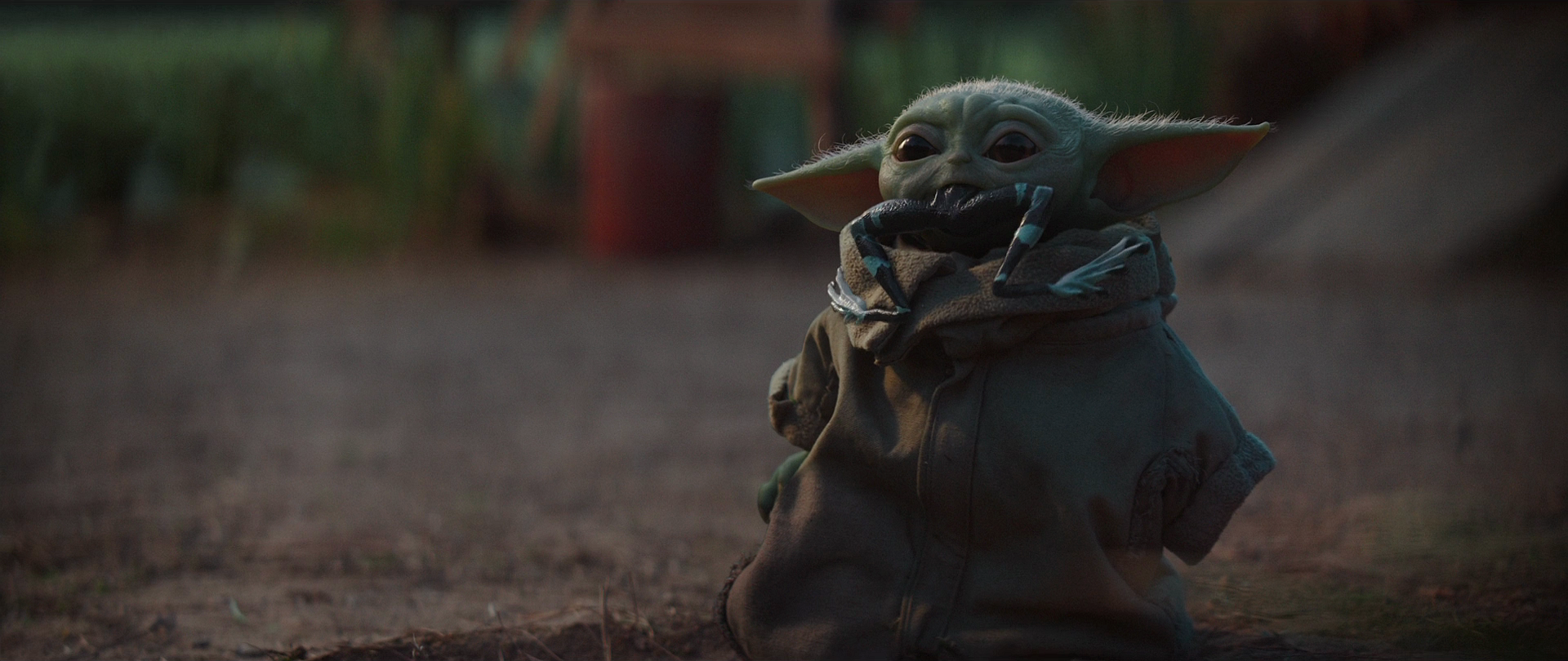 Upon arriving on Trask, Djarin, Grogu, and Frog Lady managed to enter the planet's atmosphere, only to crash-land in the spaceport's harbor. After witnessing the reunion of Frog Lady and her husband, Grogu accompanied Djarin and the couple to a tavern. Before discussing his deal with a Quarren captain, Djarin ordered some soup for Grogu, who was surprised when a small tentacled creature attacked him from the broth as he ate. Luckily, Djarin casually removed the creature and told Grogu not to play with his food.[26]
