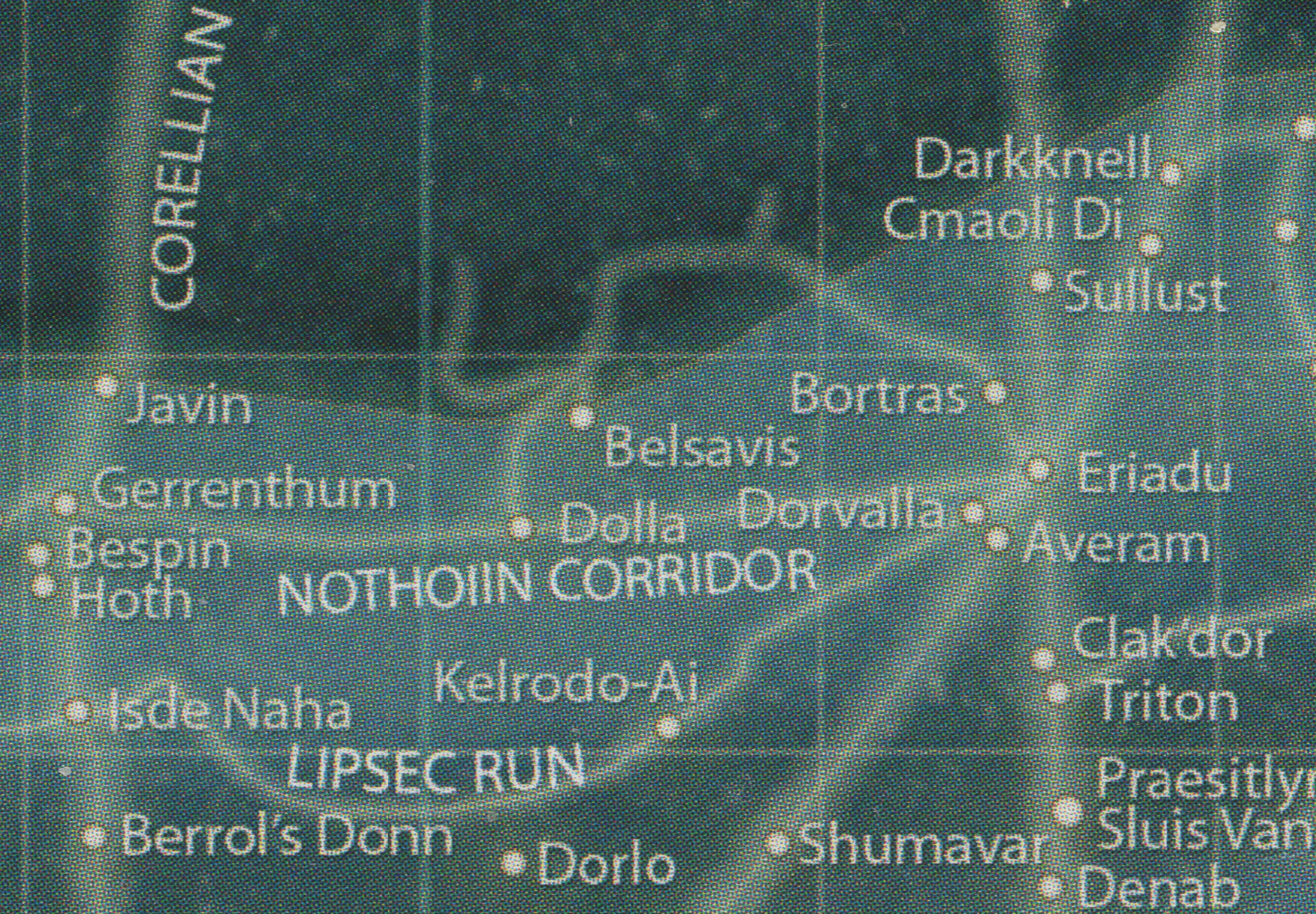 Dolla was an astronomical object[3] located in the Dolla system,[1] a part of the Videnda sector[2] in the Western Reaches portion of the Outer Rim Territories. It was situated at the junction of the hyperlanes known as the Nothoiin Corridor, which connected it to the Bavva system in the Anoat sector and the Eriadu system of the Seswenna sector, and the Anturi Reach, which linked it to the Senex sector's Yetoom system.[1]