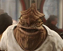 Doodnik Sharpelz was a male Jillsarian who was raised by adoptive natives on the planet Ojom.[2] He was friends with the Besalisk Dexter Jettster, and,[1] before the year 19 BBY,[6] the two of them left their homeworld and found employment as bartenders on Tyne's Horky,[1] a mining world located on the galactic frontier.[7] Working together, Sharpelz and Jettster prepared such drinks as photon fizzles, giva jumbos, and circuit cider.[1]