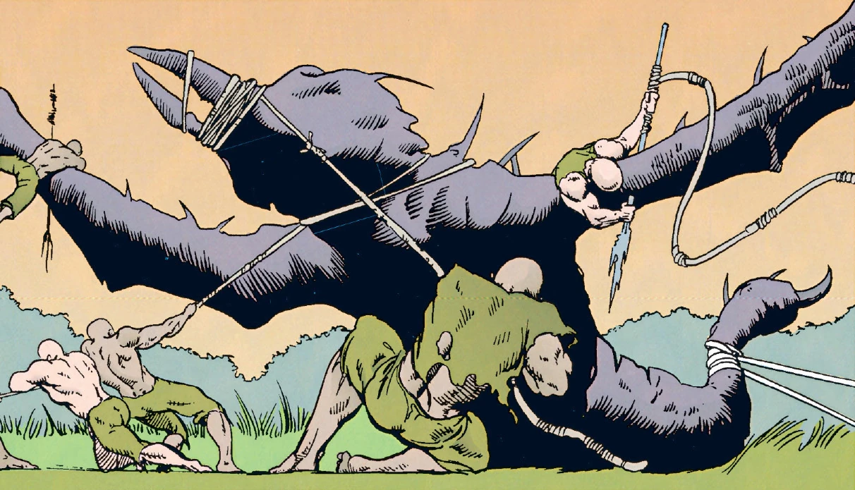 Handling a single Drexl was a difficult task, often requiring three riders to accomplish it. One rider was required to focus their handling on the reins and direct the beast, while another rider was armed with a weapon, with the third rider calling out orders to the controlling rider.[4]