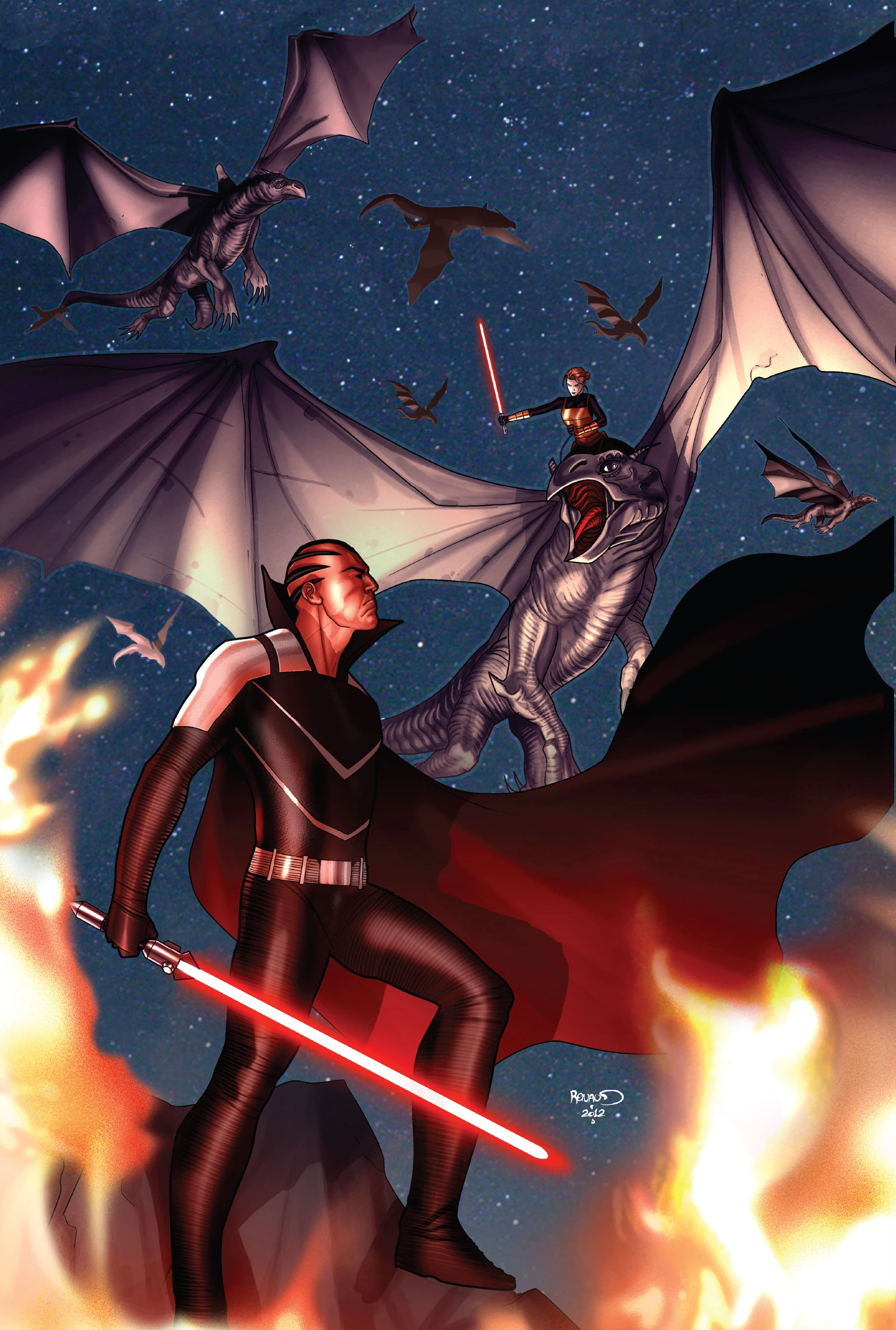 Spinner and Takara escaped the fighting with the debilitated Iliana, riding on an uvak. They are rejoined by Kaliska who revealed that the Jedi ancestors of the Doomed had hidden a starship beneath the Sith capital Tahv. Aware of Dreypa's ambitions of reaching the stars, Kaliska convinced Spinner and Takara to destroy the ship. However, Dreypa and his Leviathans quickly catch up with them, having devoured all of their opponents including the Doomed forces. Spinner and Iliana managed to escape but Kaliska was captured and killed by one of Dreypa's Leviathans. In an attempt to delay Dreypa, Takara took the Dark Jedi on a duel.[5] However, she was unable to match the Sith Lord's mastery of the Dark Side and was taken captive.[4]