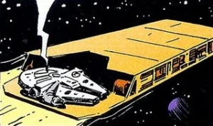 As a youth, Han Solo once stowed away on board a transport that had been converted to a drone barge; luckily for him that particular vessel still maintained a limited atmosphere. Tanith Shire – a supply-tug operator at the Fondor shipyards – regularly sabotaged these vessels by reprogramming their control systems to exit hyperspace prematurely and crash-land on the remote desert world of Ophideraan where their cargo and electronic systems would be plundered by the Serpent Masters who employed her.