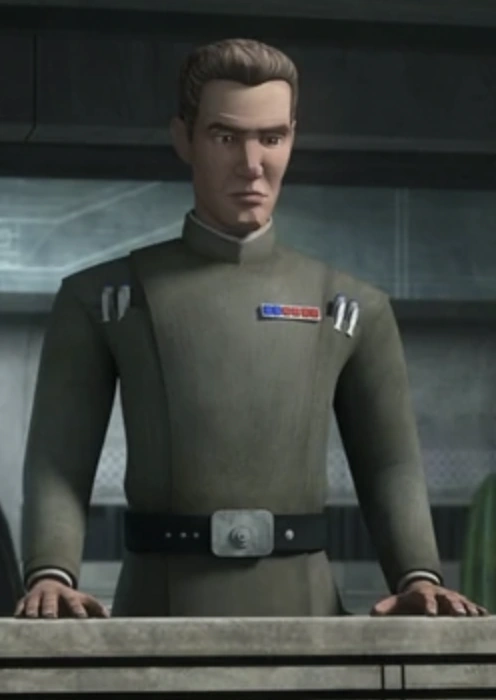 When the squad's Nu-class attack/transport shuttle returned to Kamino in triumph, Vice Admiral Rampart and Governor Tarkin awaited them in the hangar. Tarkin noted that the squad had lost a trooper—ES-01 had been executed by Crosshair for refusing to kill citizens under Gerrera's protection on Onderon—but Crosshair reported that the camp had been dealt with, though Gerrera had left before they arrived. Rampart then reminded his superior that the loss was unfortunate but soldiers know the risks of battle. Tarkin was impressed as they succeeded while Crosshair's brothers had failed, while Rampart saw the success as proof of the potential of his initiative. As a result, Tarkin left Rampart in charge of the project and departed from Kamino.[4]