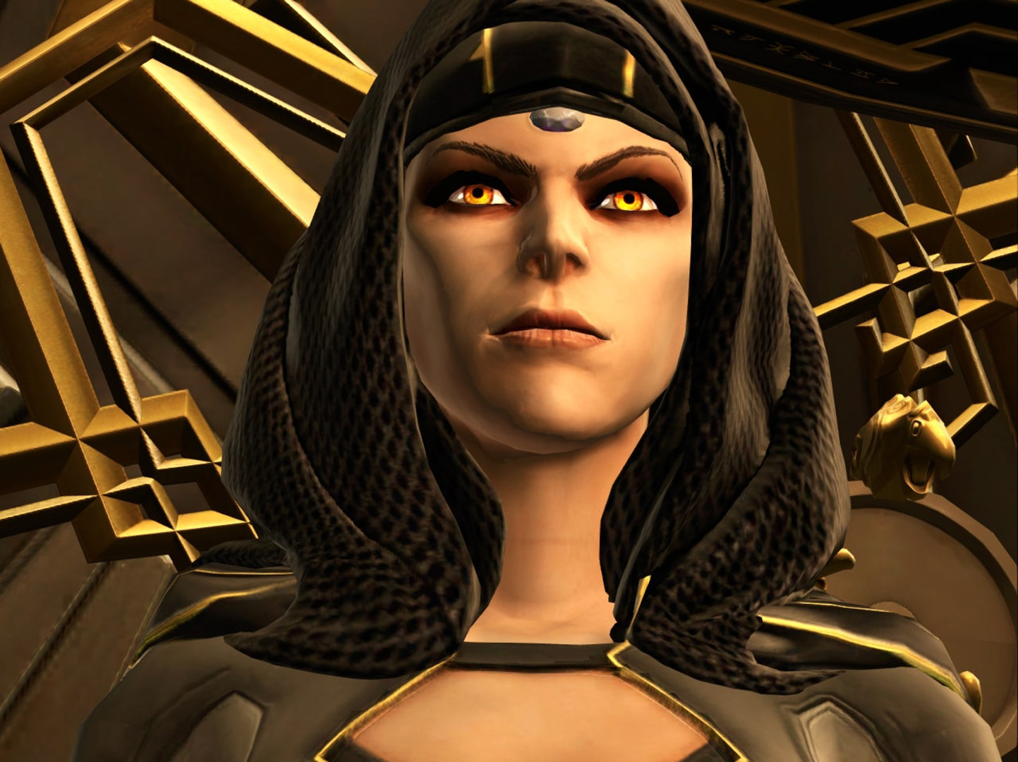 Vaylin returned to Zakuul, where SCORPIO welcomed her and explained that she only took the Eternal Throne to grant free will to the GEMINI droids. SCORPIO then willingly surrendered the Eternal Throne to Vaylin, offering to stay and advise the new Empress of Zakuul on how to destroy their enemies.[31] As the new Eternal Empress, Vaylin quickly proved herself an even more brutal leader than Arcann. During her coronation, she publicly executed a dozen Knights of Zakuul for failing to protect her brother after personally congratulating each victim on the great honor of dying at her hand, an act of cruelty that shocked Zakuul's citizens.[36]