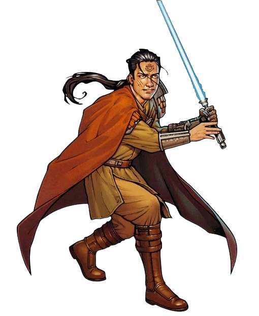 A Human male, Exar Kun was discovered as a Force-sensitive and taken in for training by the Jedi Order several millennia before the Battle of Yavin. Recognized as an extremely promising talent, Kun apprenticed under the venerable[5] Krevaaki[13] Jedi Master Vodo-Siosk Baas, training on the planet Dantooine alongside the Cathar mates Crado and Sylvar. On Dantooine, Kun honed his skills with the lightsaber by frequently taking on the two Cathar in training duels. From the beginning, Kun harbored a deep, burning desire to become a great Jedi,[14] and pushed himself extremely hard to achieve his goals.[7] Possessed of great ability but not a Jedi Knight yet, Kun regardless had great pride in his own skill and believed himself ready to learn about forbidden knowledge and the history of the Sith. On one occasion[5] in 3997 BBY,[15] Kun snuck into Baas' hut and activated the Master's holocron, which contained a wealth of information about the Sith—it was there that Kun first heard the name of Freedon Nadd, a fallen Jedi turned Dark Lord of the Sith who conquered the planet Onderon and ruled as a Sith king. Baas soon discovered Kun with the holocron, and rebuked the young apprentice for his curiosity. As Kun was nearing the end of his lightsaber training, Baas instead sent Kun to summon Crado and Sylvar for another round of training duels.[5]