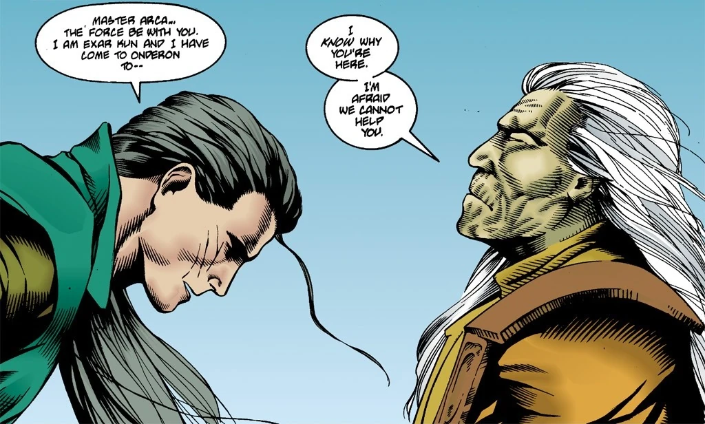"Nonsense. I am a Jedi Knight and am free to come and go as I please. I will begin my research without your help." - ―Arca Jeth and Exar Kun