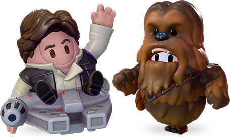 On May 4, 2024, it was announced that Fall Guys and Star Wars would be collaborating to introduce Star Wars content to the game from May 7 to May 20. This new cosmetic content was inspired by the films Star Wars: Episode V The Empire Strikes Back and Star Wars: Episode VI Return of the Jedi and featured new costumes of the smuggler Han Solo riding atop the starship Millennium Falcon, the smuggler Chewbacca, the bounty hunter Boba Fett, and a classic stormtrooper. It also included a special celebration featuring the Sarlacc pit and a carbon-freezing chamber.