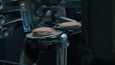 Shortly before the outbreak of the Clone Wars[2] in 22 BBY,[6] a COO-series cook droid stationed in a cafeteria aboard an AA-9 Freighter-Liner traveling from the planets Coruscant to Naboo prepared flatcakes for the ship's passengers. While carrying four platters of flatcakes and flipping one of them, the droid shooed away the astromech droid R2-D2 from the ship's food counter.[2]