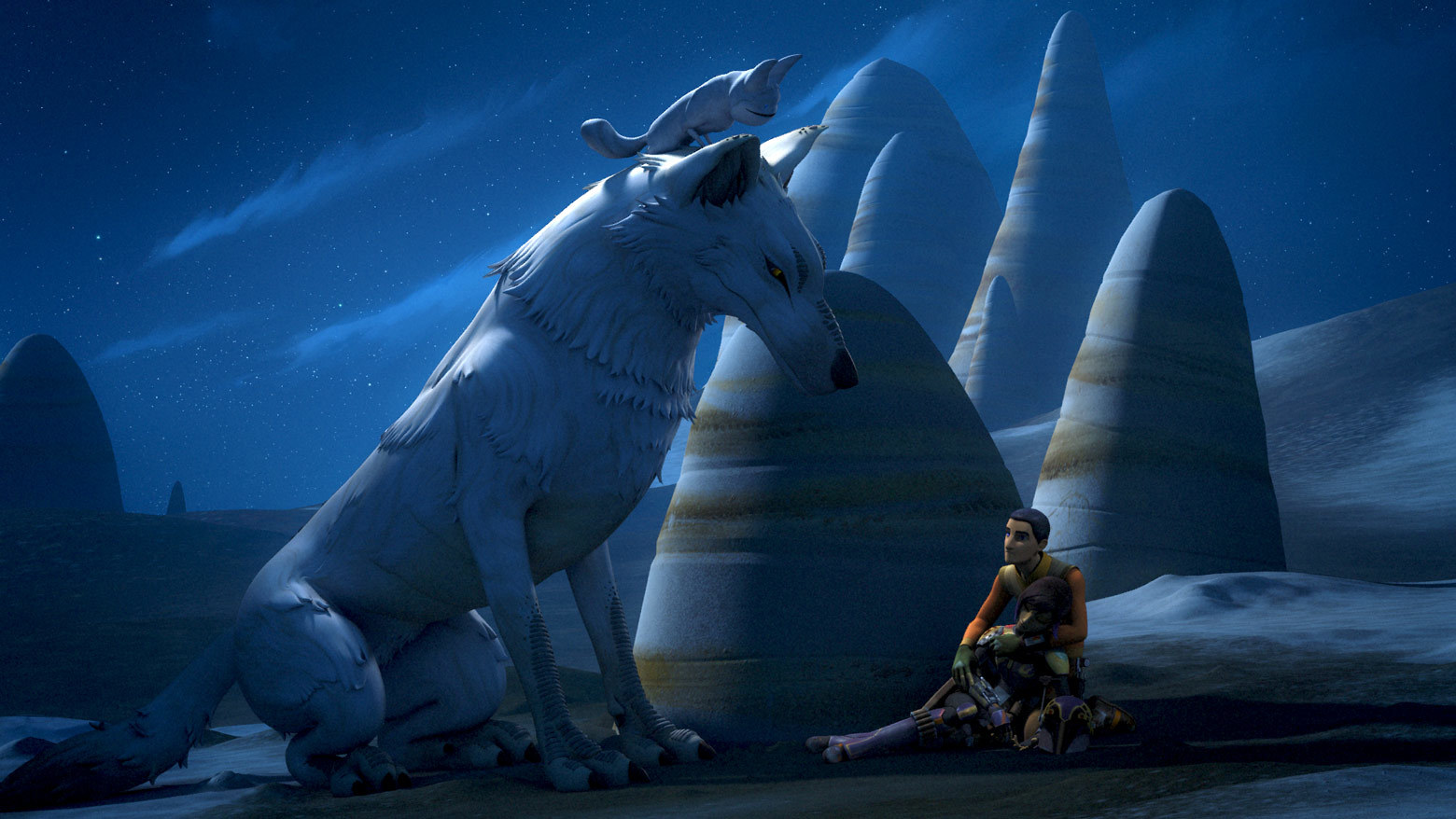 Ezra and Sabine encountered a white loth-wolf