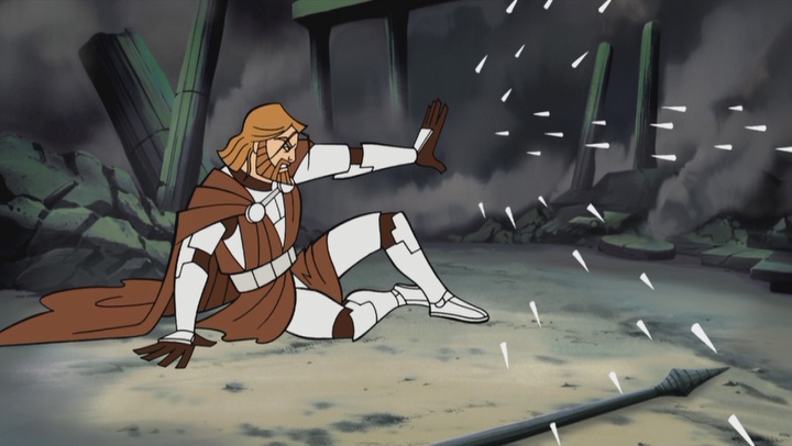 During the Clone Wars, Obi-Wan Kenobi also used this ability during a fight with Durge to deflect projectiles from his gatling gauntlet, and again later against a group of droidekas.[7] He was locked into a similar situation on Mustafar, when he and Darth Vader fought each other with thrusting Force,[6] and the Sith flung blasting pulses of the dark side at him, which he turned aside.[8]
