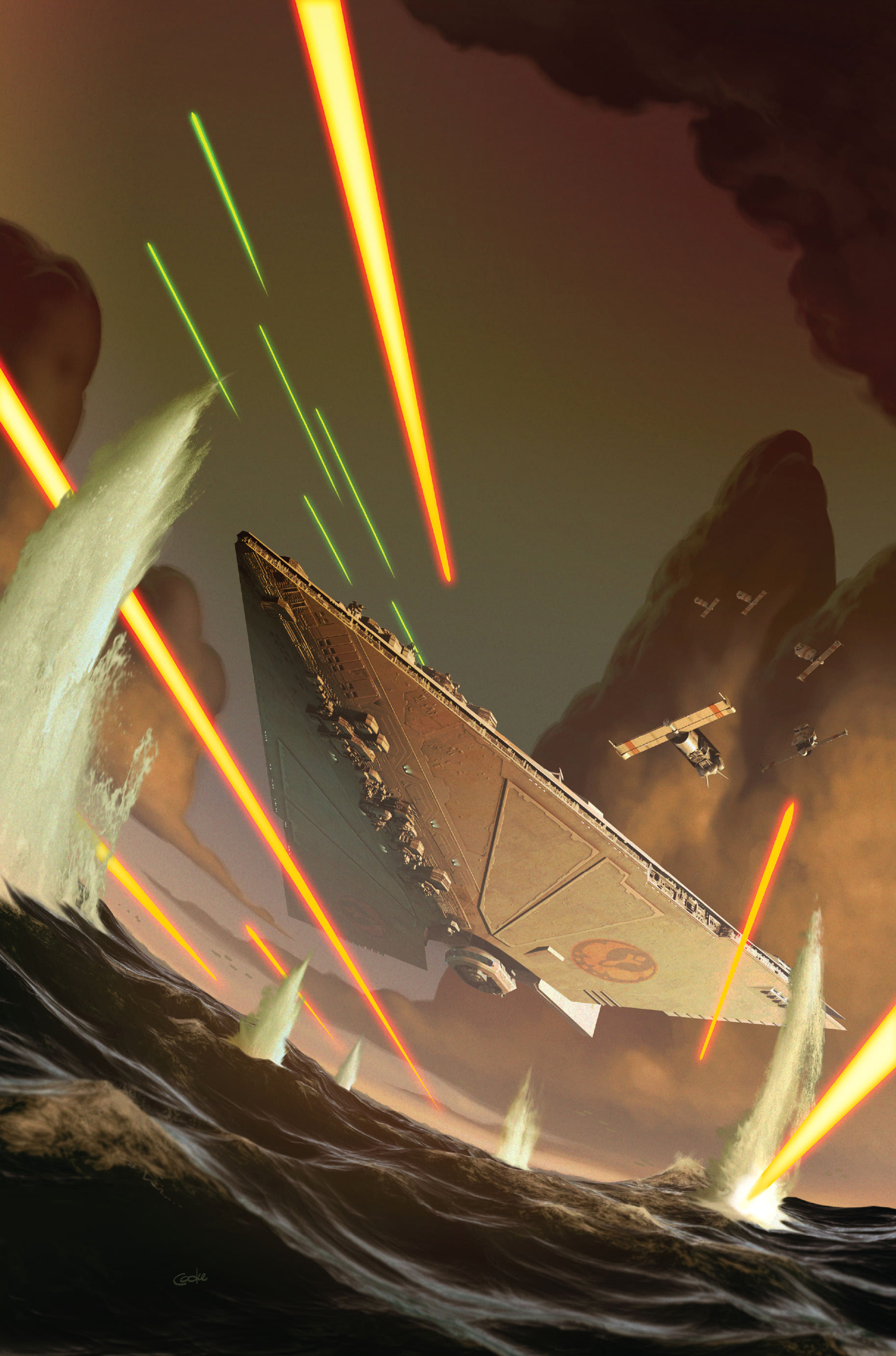 With the shipyard defenses disabled and Heurkea secured, Stazi and the Galactic Alliance fleet emerged from hyperspace. The Alliance, backed up by multiple MC140 Scythe-class main battle cruisers, captured Pellaeon-class Star Destroyers, and numerous frigates, engaged a token Sith force of five Star Destroyers. Outnumbered and overwhelmed by superior firepower, the surviving Sith warships retreated. With the space around Dac cleared, Stazi signaled the evacuation fleet. The genocide of the Mon Calamari and Wyyrlok's final protocol had angered citizens from across the galaxy. A fleet of private starships, ranging from old Mon Cal cruisers to Clone Wars-era Star Destroyers to private transports descended en mass on Dac to rescue the world's population.[25]
