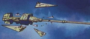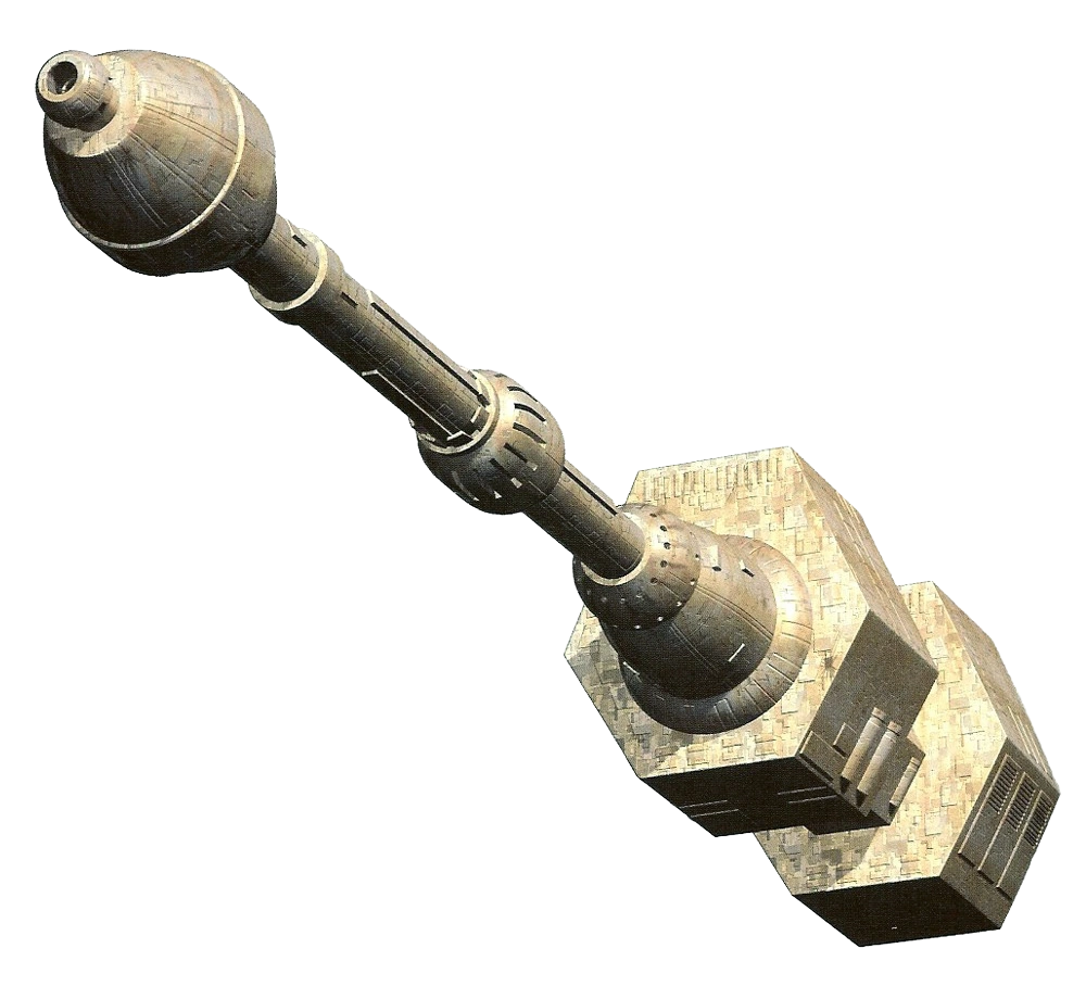 The Galaxy Gun was a 7,250-meter-long tube-shaped space station built above Byss. It was a superweapon capable of firing large, destructive projectiles equipped with particle disintegrator warheads capable of destroying an entire planet. It was also equipped with hyperdrive and sublight thrusters.