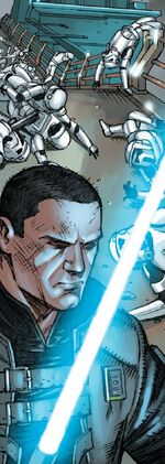 After his "resurrection" on board the Empirical, Marek was given the weapon of Rahm Kota,[4] which he had originally retrieved for Vader during his duel with the Jedi Master.[3] Marek quickly adjusted to the green-bladed weapon, utilizing it during his escape from the Empirical. The weapon saw use on Cloud City and Kashyyyk against the likes of the Imperial Shadow guard and Captain Ozzik Sturn.[3]