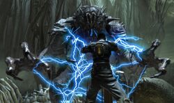 As a trained Sith apprentice, Marek became extremely proficient in Force lightning, with his skill rivaling even that of Darth Sidious. He could cast energy so powerful that it would kill an opponent with a single blast, and could target more than one opponent at a time. He was also able to channel lightning attacks through his lightsaber, thus amplifying blade attacks with dark side energy. He applied lightning in a more tactical manner, charging up or shorting out certain types of machinery. Furthermore, Marek could manipulate the technique to generate Sith Seekers, essentially a combination of Force push and Force lightning.[3]