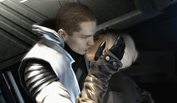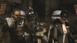 On his way out to his ship, Starkiller was ambushed by PROXY, who was using his Obi-Wan Kenobi combat module. Starkiller quickly defeated PROXY, though he expressed surprise at PROXY's use of such an old module, one he thought erased. As they approached the Rogue Shadow, Starkiller awkwardly met with his new pilot, Juno Eclipse.[3] The main reason for Starkiller's surprise was that he had never had a female pilot before, and he afterwards became convinced that it was some sort of test from Vader.[8]