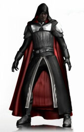 When Marek was given his new mission to found the Rebel Alliance, the Rogue Shadow was given a fully stocked wardrobe. For the most part, the color range was limited to either black or brown, depending on whether he was representing the Sith or the Jedi, though he did possess other outfits. His original garment provided by Darth Vader during the mission was a heavy Sith robe that featured light armor plates and a large, flowing black cape.[4] One of his notable Jedi-inspired garments was the Jedi Adventure Robe that he donned during the Corellian Treaty, and continued to wear during his assault on the Death Star.[3]