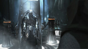 As Raxus Prime was in the Tion Hegemony in the Outer Rim, the trip took a considerable length of time, which gave Starkiller a chance to refresh and research the objectives. However, he was distracted, and frequently had to ask PROXY to repeat mission details that he had missed while deep in thought, and eventually retreated to the onboard meditation chamber to gather his energies. There was little information on Kazdan Paratus, and PROXY was unable to reproduce his image. Paratus was accredited by the files as having considerable skill at droid making, and during the Clone Wars, he was lured out of seclusion to study the CIS droid armies, all the while building his own droids to reinforce his troops. During a disastrous campaign, all his troopers had been killed, forcing Paratus to cobble together his own droid army to fight back. With no troopers in his forces, there was no one to obey Order 66 when it was issued, thus allowing Paratus to escape. Shortly afterward, Starkiller was called up to the cockpit by Juno just before arrival. Once within the atmosphere, they began searching for Paratus, eventually discovering his crude imitation of the Jedi Temple on the surface.[4]